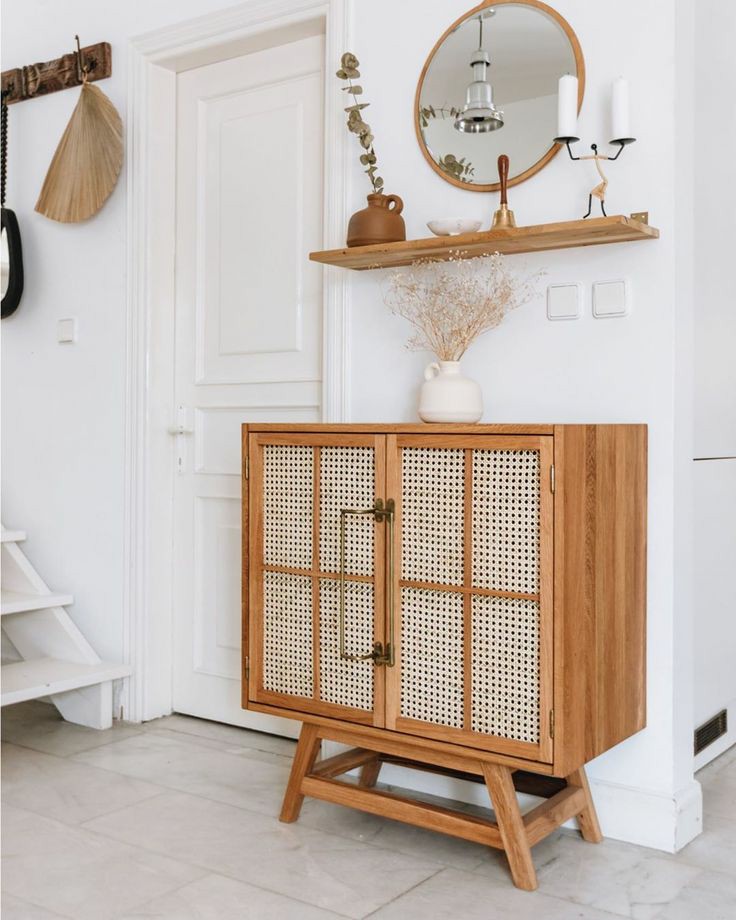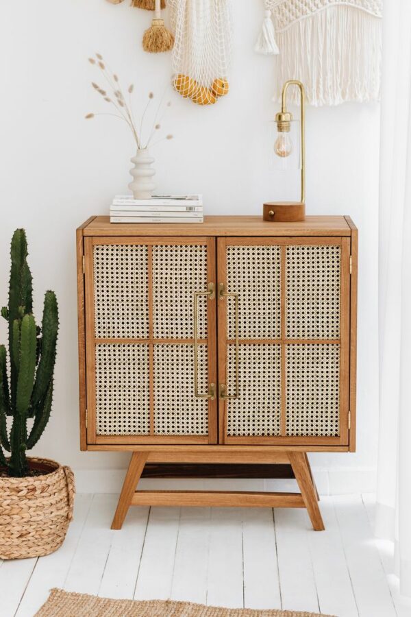 The doors are fitted with a cannage rattan weaving technique. This gives the furniture a unique look!