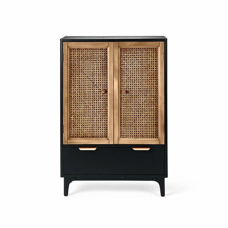 Characterized by the stunning natural rattan fronts and contrasting black surround, our wicker storage unit brings a modern take on a retro design. Perfect for any contemporary or global styled home, this fully assembled furniture range is completed with brushed gold effect handles, adding a touch of luxe styling.