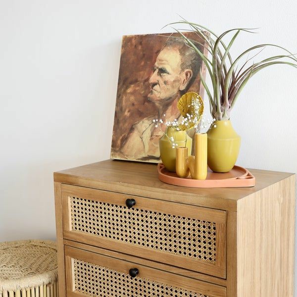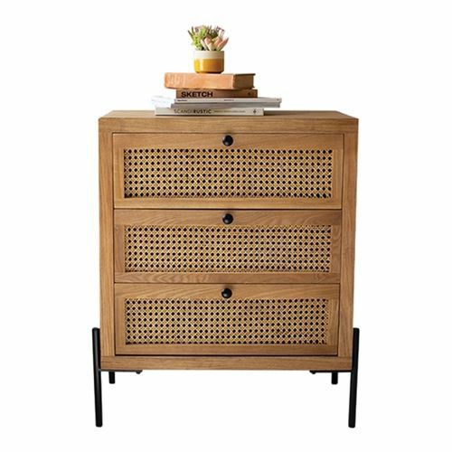 Curate a dreamy bedroom setup with this gorgeous Wood and Caned Rattan Bedside Chest.
