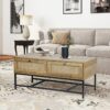 The coffee table will add a pleasing focal point to your space. The piece is constructed out of solid wood and has close storage drawers.
