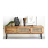 Iron legs and close wooden drawers lend an industrial edge to the MEDIA CONSOLE, which is crafted from wooden and iron. Two roomy drawers provide plenty of storage space for magzines, electronics and more.