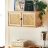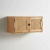 Our wicker wood wall shelf has got a small tiny cabinet, creating a unique composition. It is a modern and practical wall decoration. Thanks to the minimalist, simple form, the shelves will look beautiful in any interior.
