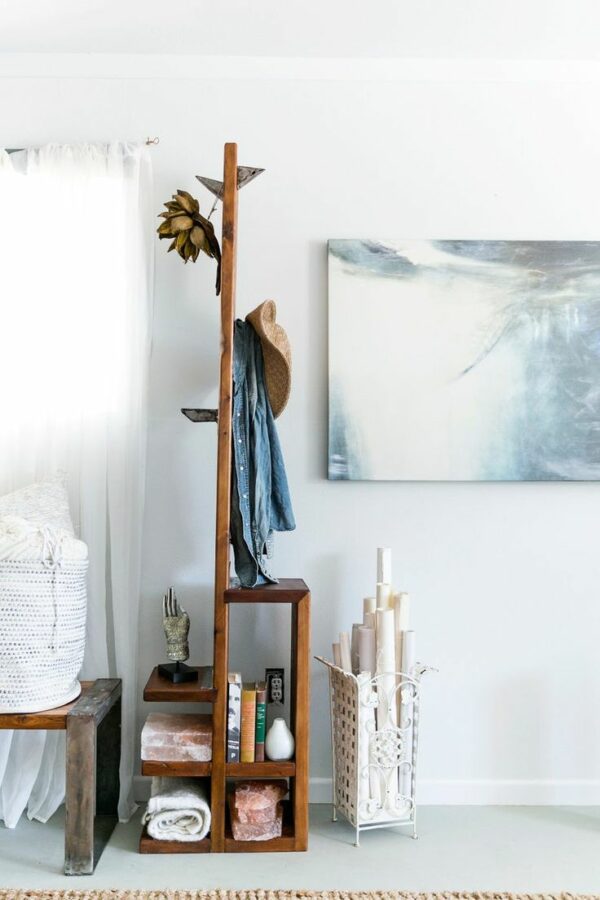 This space-conscience coat rack gives you plenty of hangers to rest your jackets and bags while saving on floor space. It’s made from solid wood with storage and has felt pads on the bottom to protect your floors. This coat rack has separate storage sections, providing you with plenty of space to keep your outerwear, bags, and scarves.