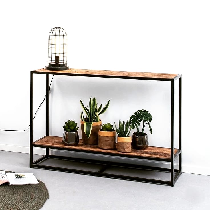 The narrow design features a frame crafted from iron and solid wooden top which gives an aesthetic look to the space.