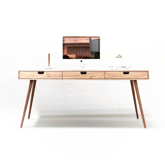 The desk table is so stylish in its simplicity. It features tapered legs and three pull out drawers with carved round-outs for a sleek, hardware-less look. Handcrafted from solid wood with stunning grains, this piece features beautiful craftsmanship and superior joinery to last forever.