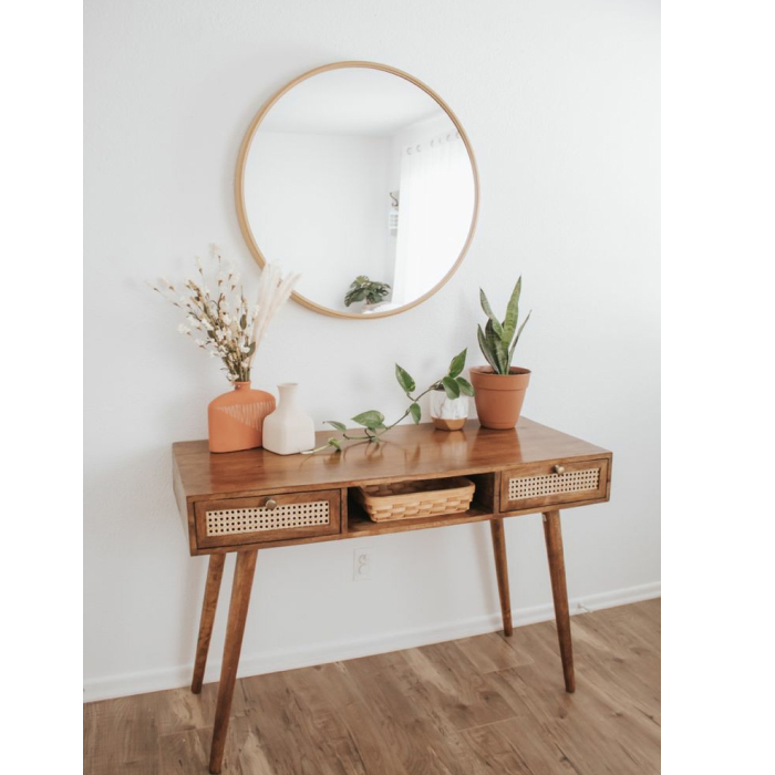 A lovely canne desk you can snag, if you need plenty of table space to spread out all those facts and figures while you work.